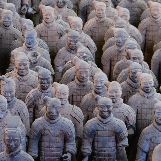 Desayuno. Hoy visitaremos el famoso Museo de Guerreros y Corceles en el que se guardan más de 6.000 figuras en terracota, a tamaño natural, que representan un gran ejército de guerreros, corceles y carros de guerra que custodiaba la tumba del emperador Qin. Visitamos también al Taller de Terracota donde podemos conocer el proceso de la elaboración de las Figuras de Terracota. Almuerzo. Por la tarde visitaremos la Plaza de la Gran Pagoda de la Oca Salvaje, la Antigua Muralla (sin subir) y el Barrio Musulmán. Por la noche, opcionalmente Show Cultural de la Dinastía Tang. Regreso al hotel. Alojamiento en Xi´An.