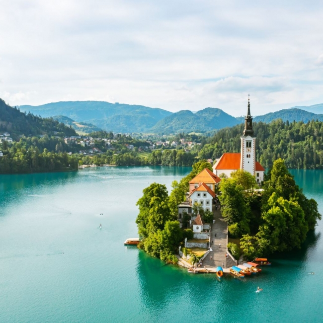 Desayuno. Por la mañana salida a uno de los lugares más lindos del país. Bled, el hermosísimo pueblo de ‘postal’, junto a un lago y un castillo medieval. Incluimos un paseo en barco por el lago de Bled visitando la islita y la iglesia. Por la tarde visita de la pequeña capital de Eslovenia a pie incluye la Catedral barroca, los “Tres puentes” y la Plaza “Mestni trg”. Tiempo libre para aprovechar de la ciudad. Alojamiento en Liubliana.